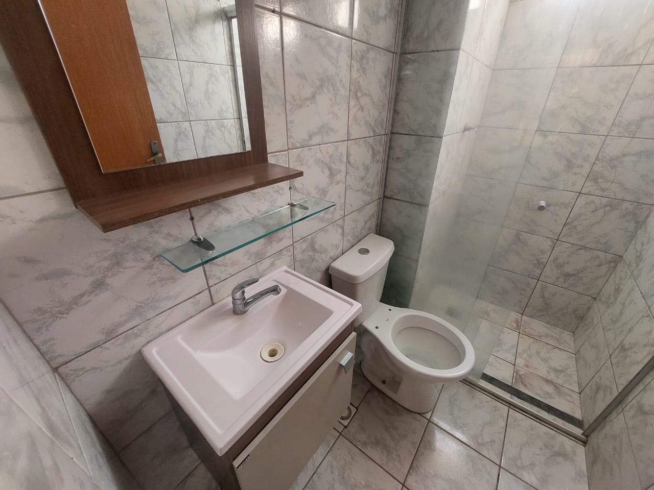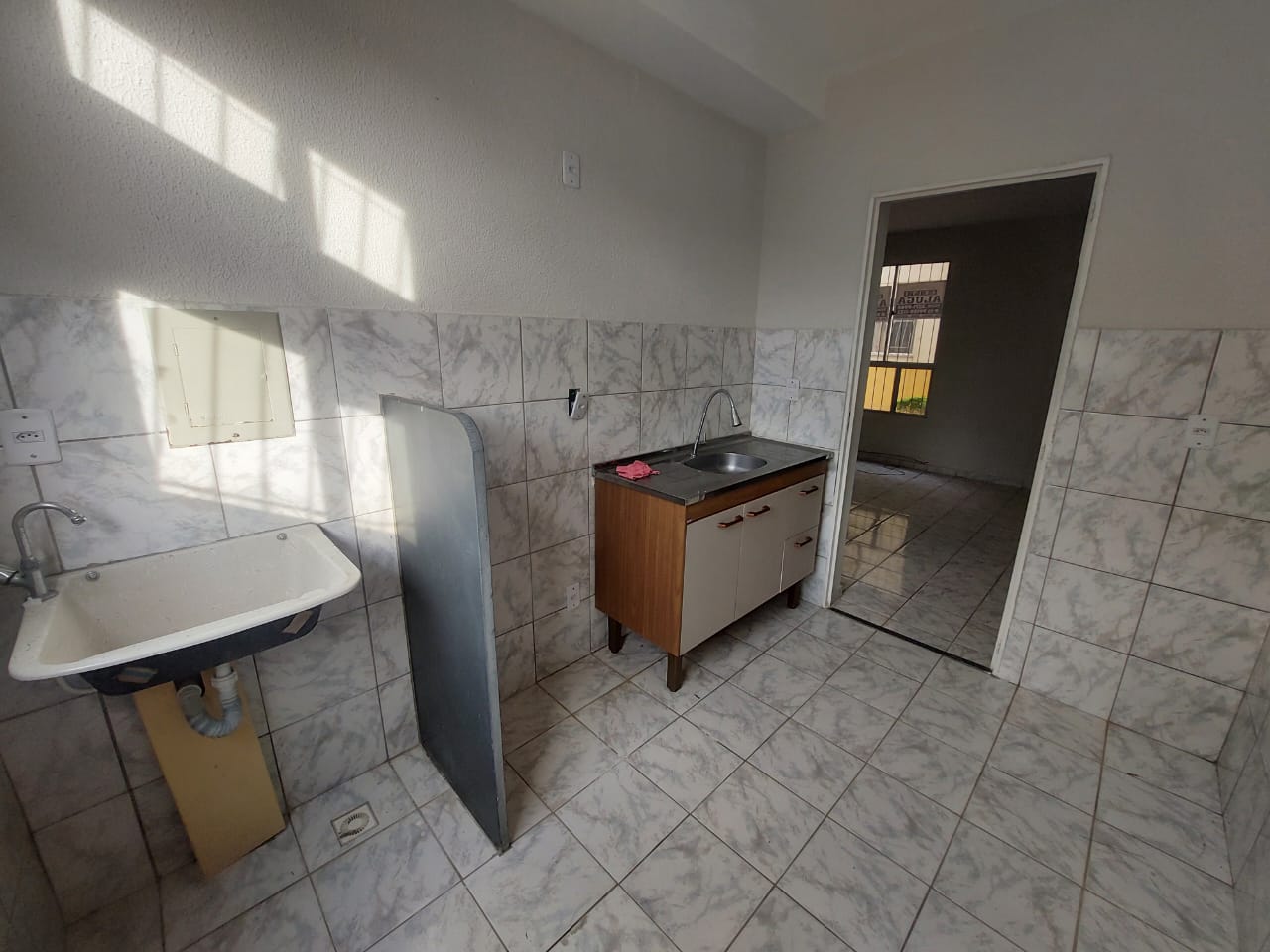 Apartamento terreo com 02 quartos, salca, cozinha, aréa de serviço, banheiro e garagem.